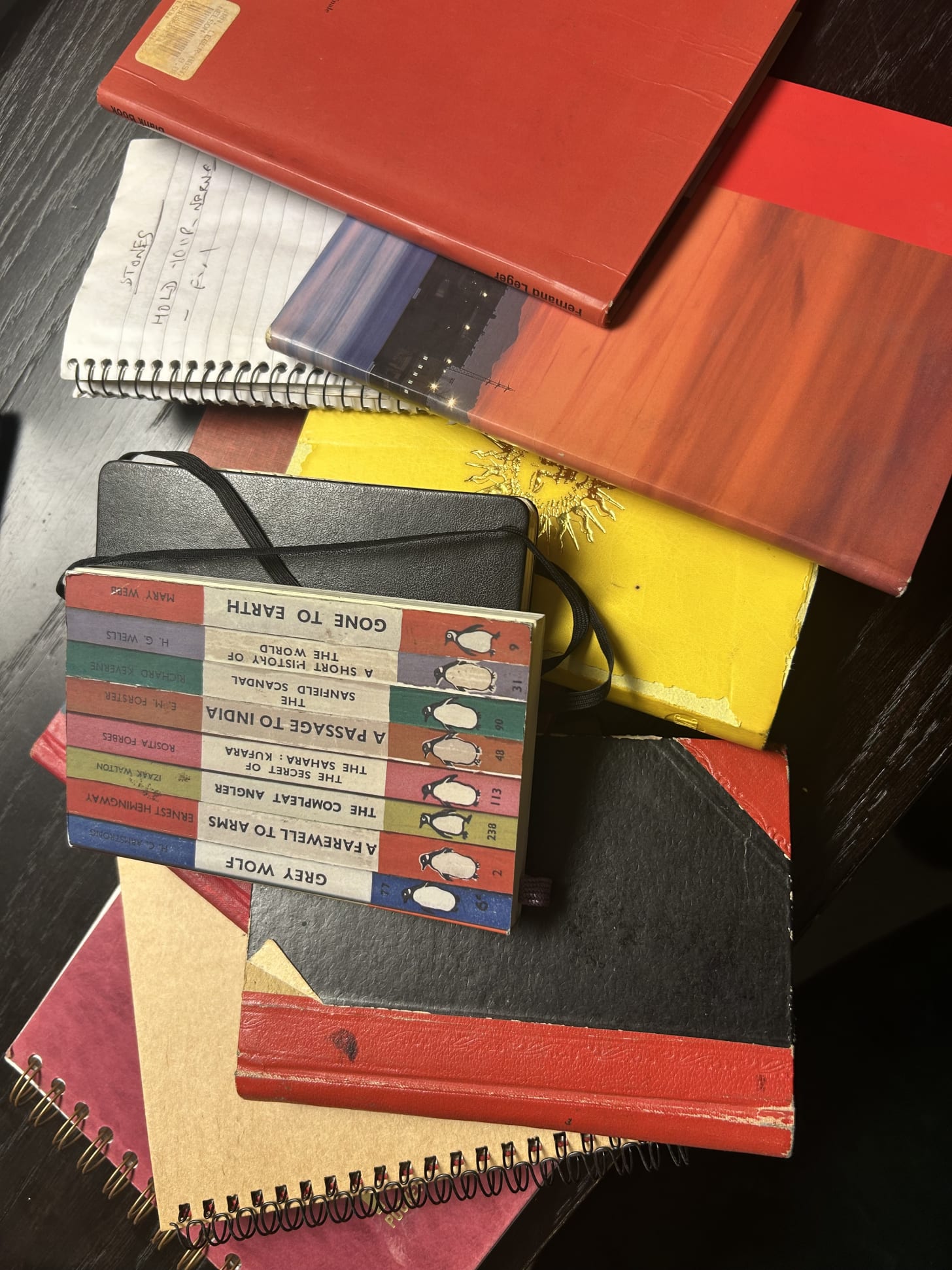 One commonplace book, begun before I’d even thought much about becoming a writer, and fifteen or twenty ideas books. Making this little pile and opening the books at random, it’s suddenly perfectly clear that the first helped to beget the others. If Elizabeth Hardwick could help me understand myself, or at least help me understand that people like me existed, even before I did, then…Well, it’s not like I thought I could do that for others. But clearly that was a legitimate goal, and despite my education, nobody had ever told me that before.